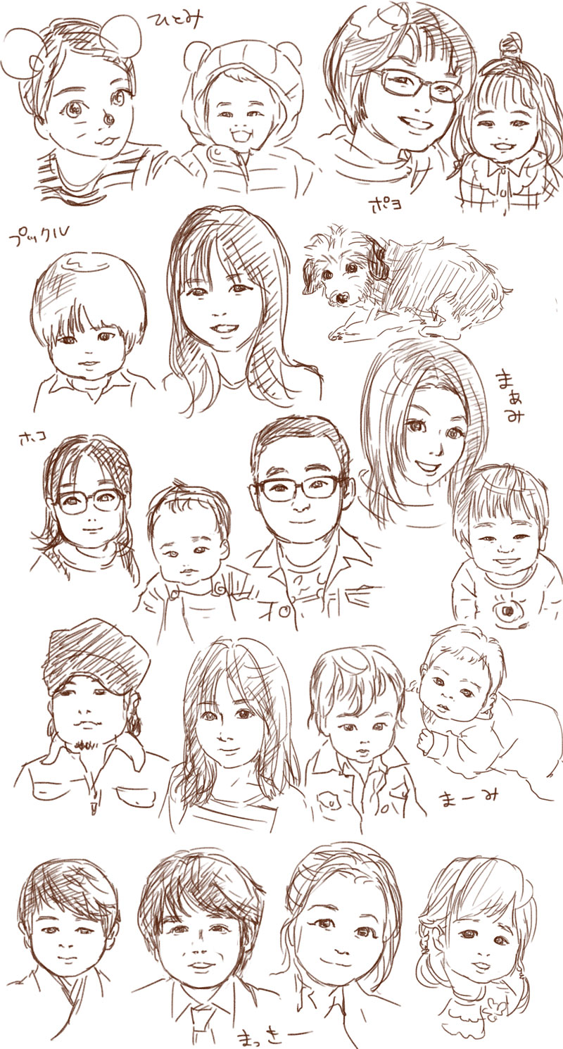 似顔絵企画も!♡人の似顔絵見るのがこんなに楽しいなんて…。みなさんの現物は見れませんが、可愛いお顔なのねぇとイラスト見ながらホクホクニヤニヤしてしまいます⑅◡̈*