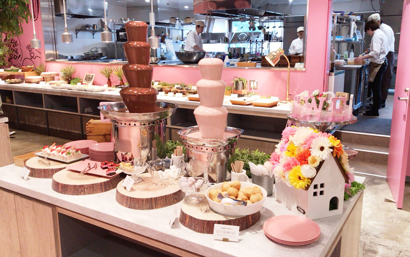こういうピンクの空間でビュッフェが楽しめます♡